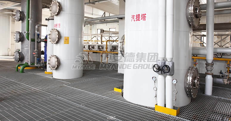 邁安德篩盤汽提塔適用于處理植物油脂浸出工廠中的混合油(萃取混合油的溶劑為正己烷)。本設備需在負壓環境中操作,降低高濃度的混合油的沸點,盡可能在最低的溫度下將油中殘留溶劑脫除。
